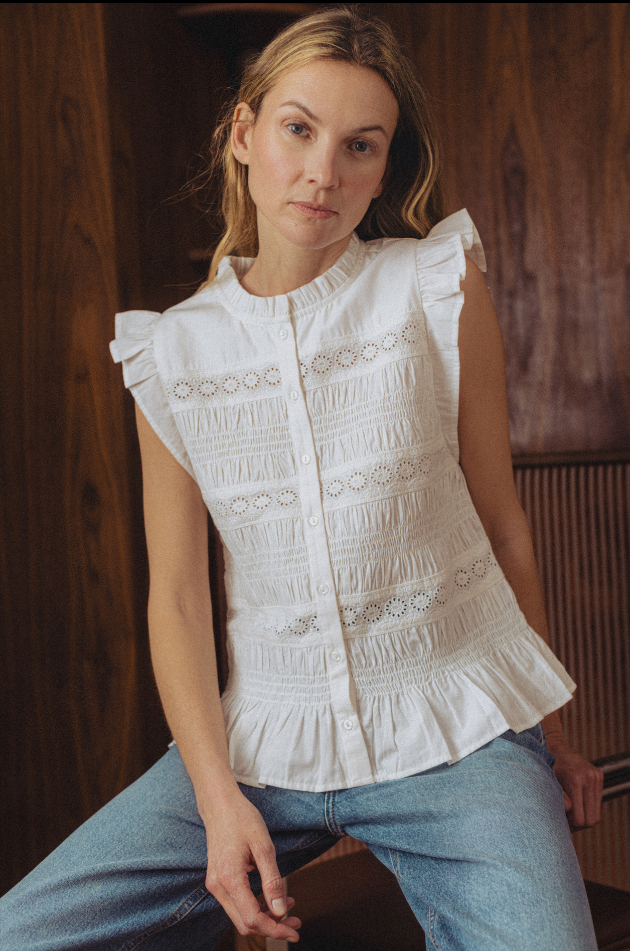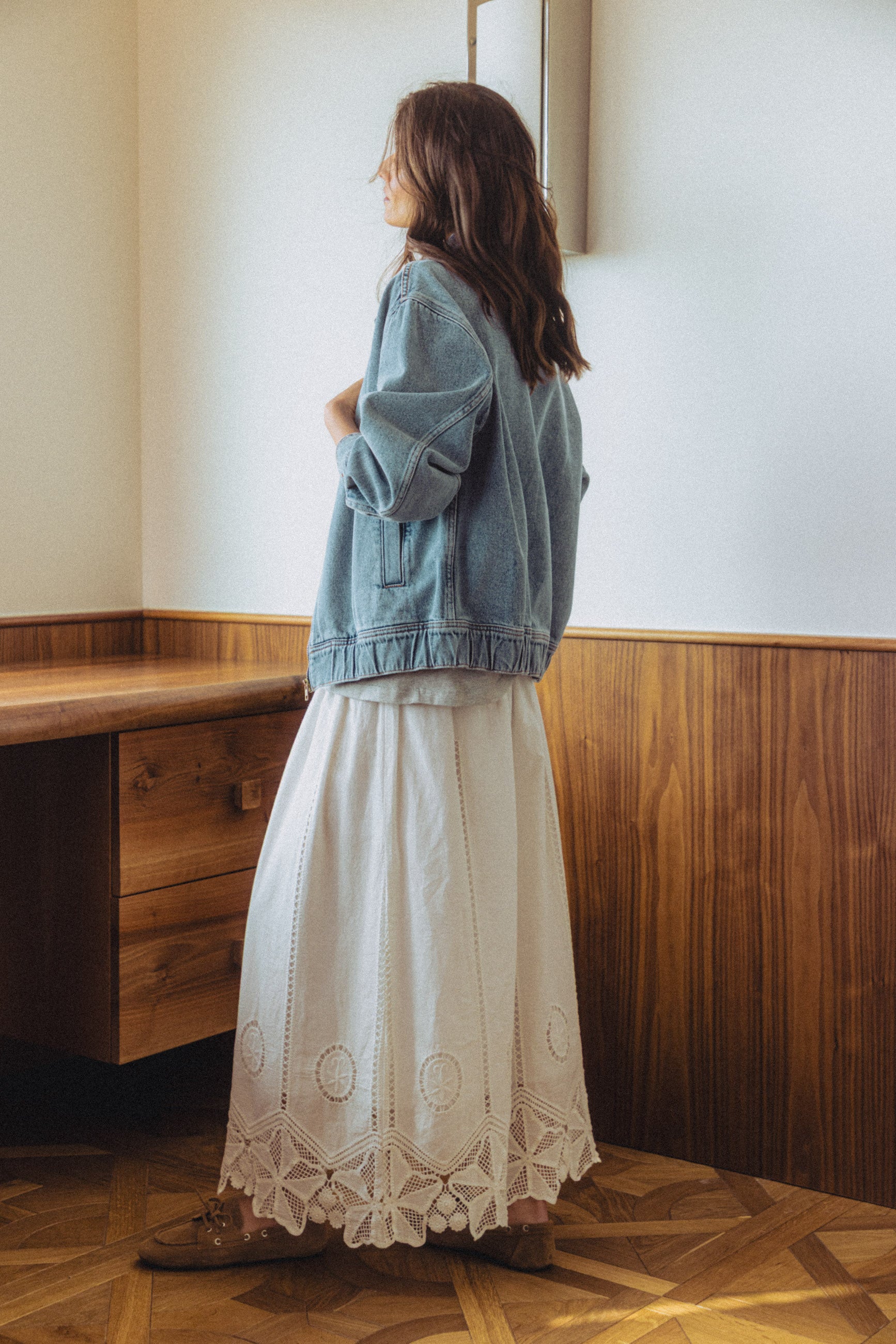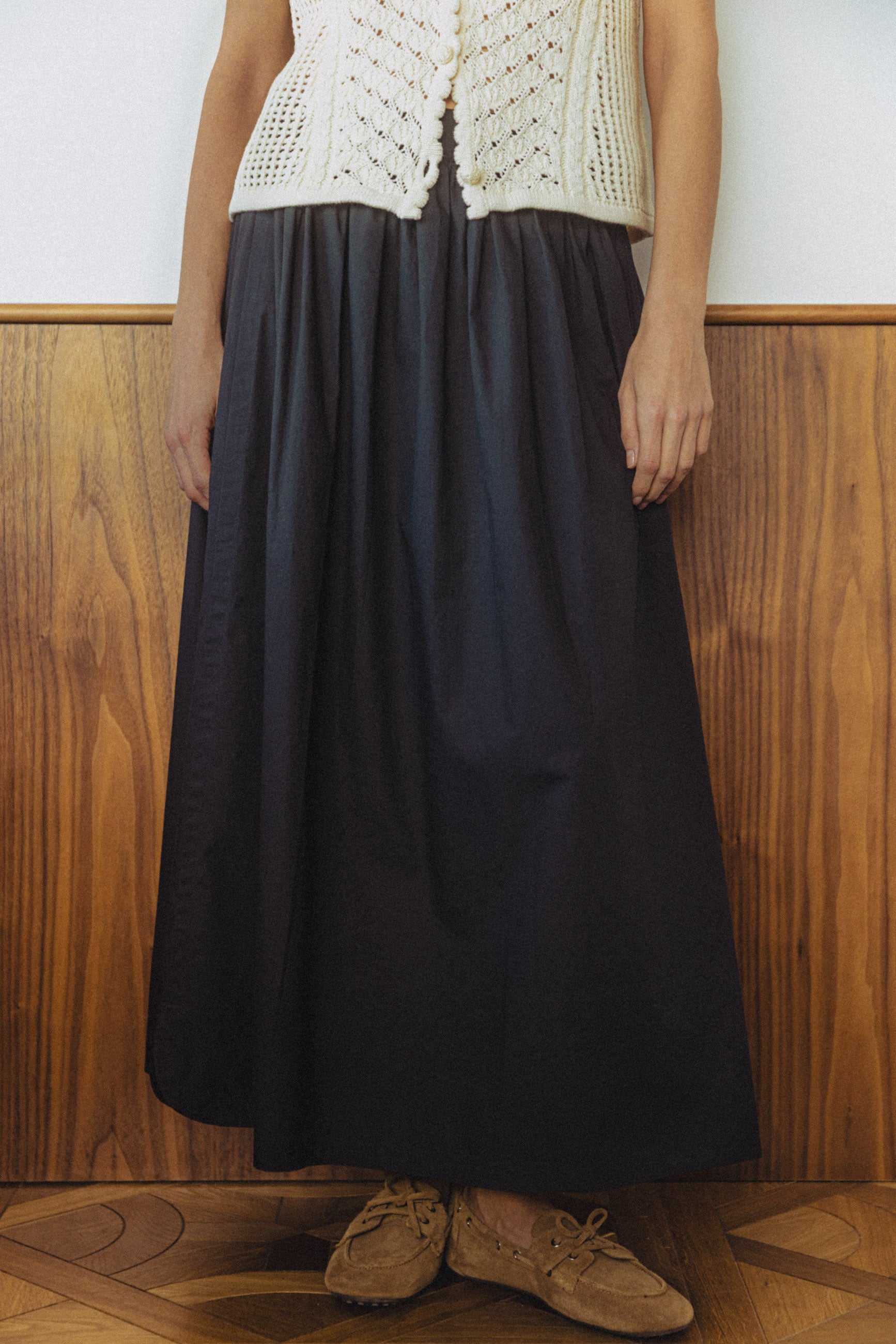 Les silhouettes s’allègent et accompagnent naturellement le mouvement. Portées à même la peau ou en superposition, les pièces révèlent toute la délicatesse de leurs matières, entre la douceur d’une maille ajourée et le relief subtil d’un fil brodé. Le jaune, lui, s’étire sur des lignes fluides et solaires, comme un écho à la lumière nouvelle.