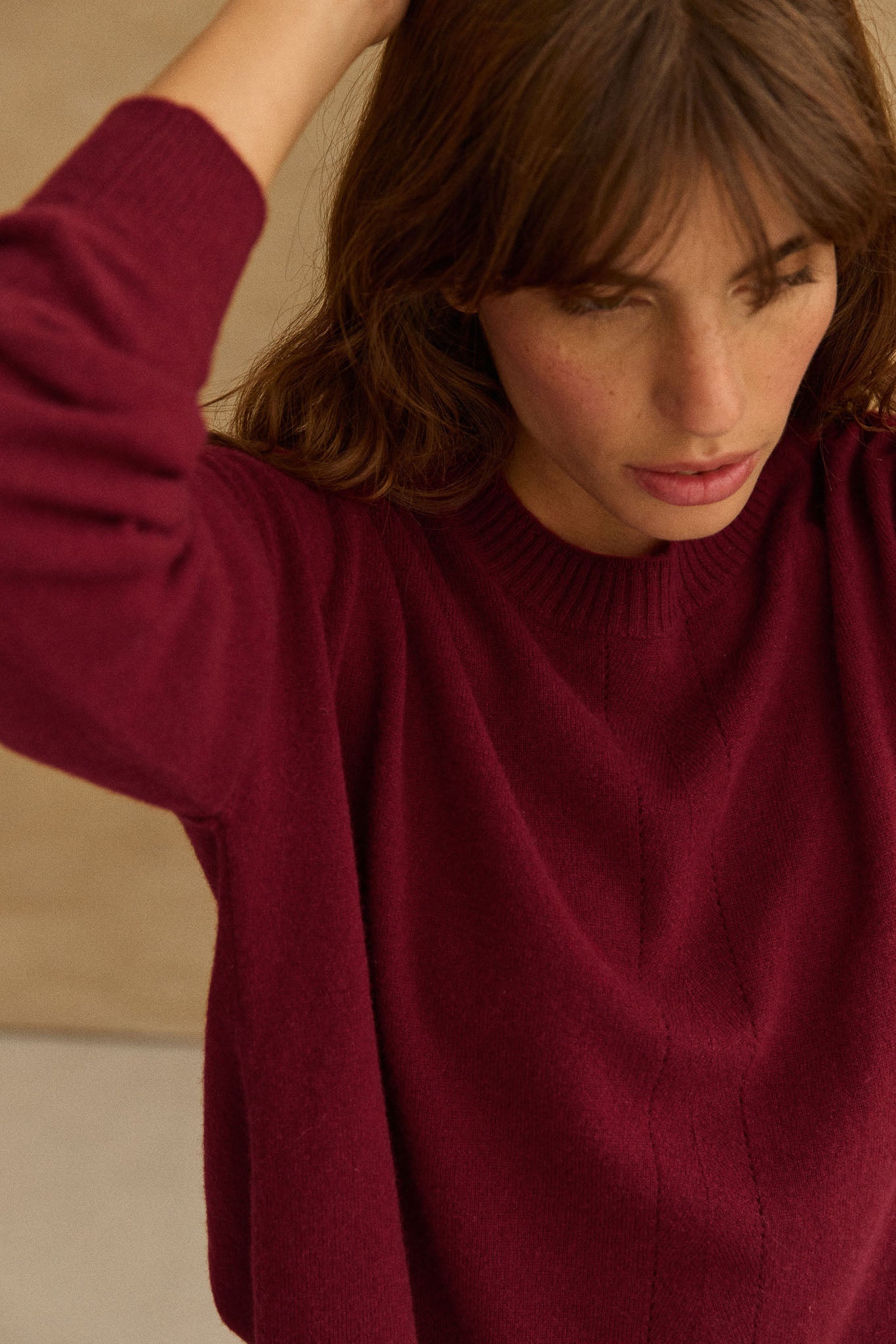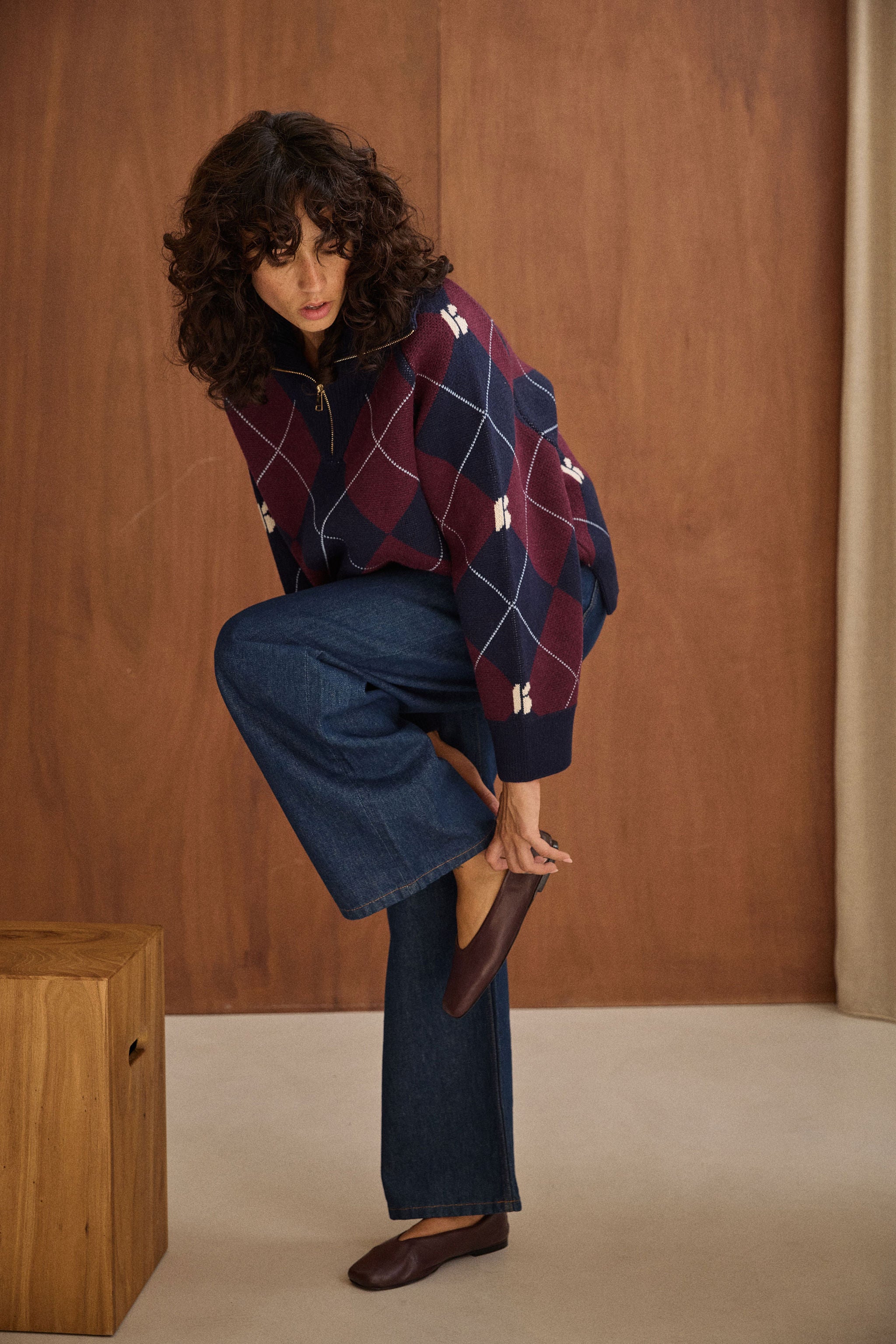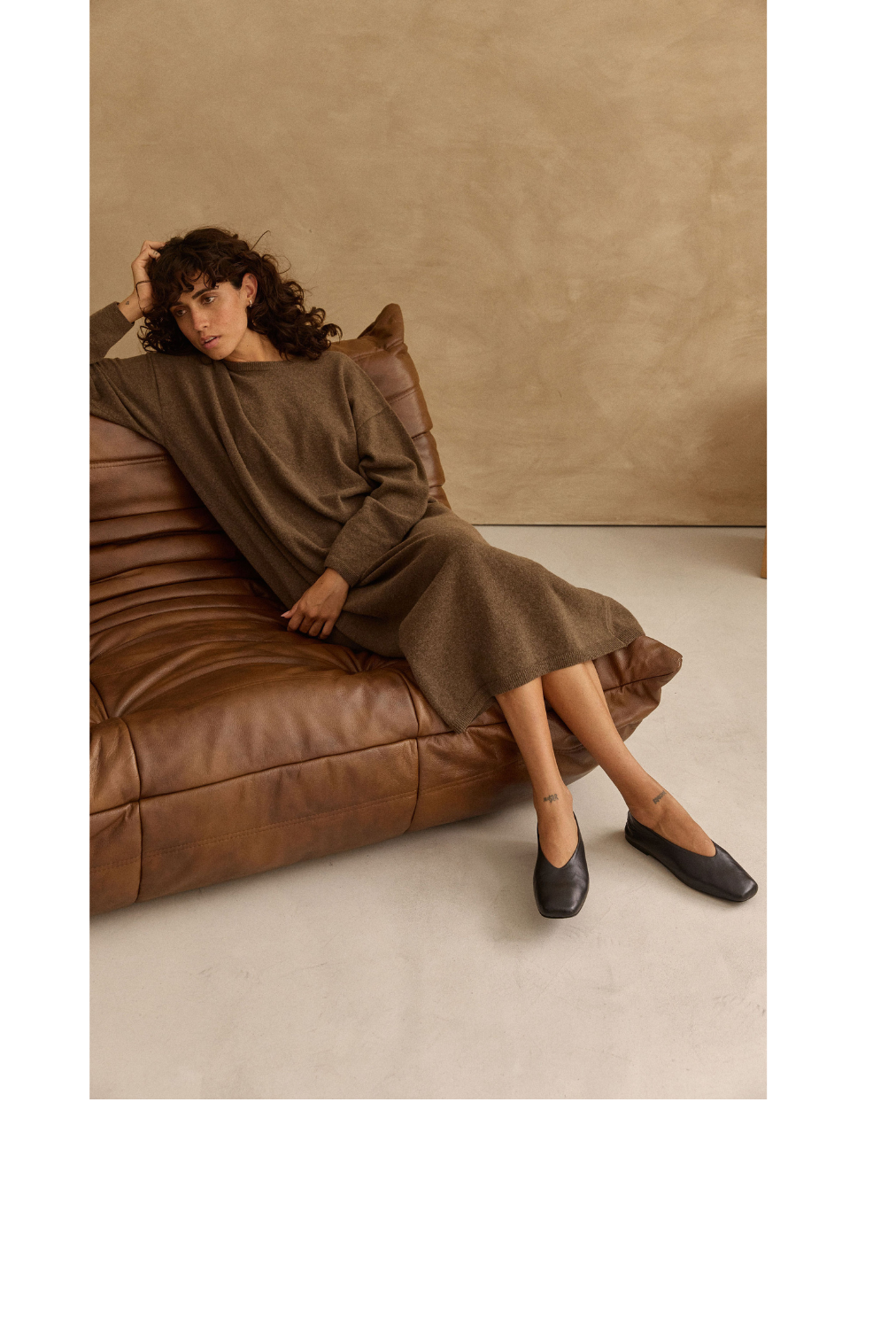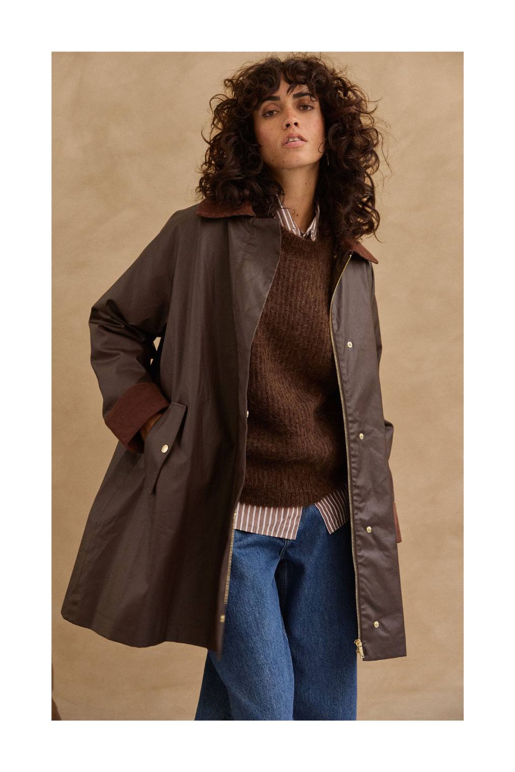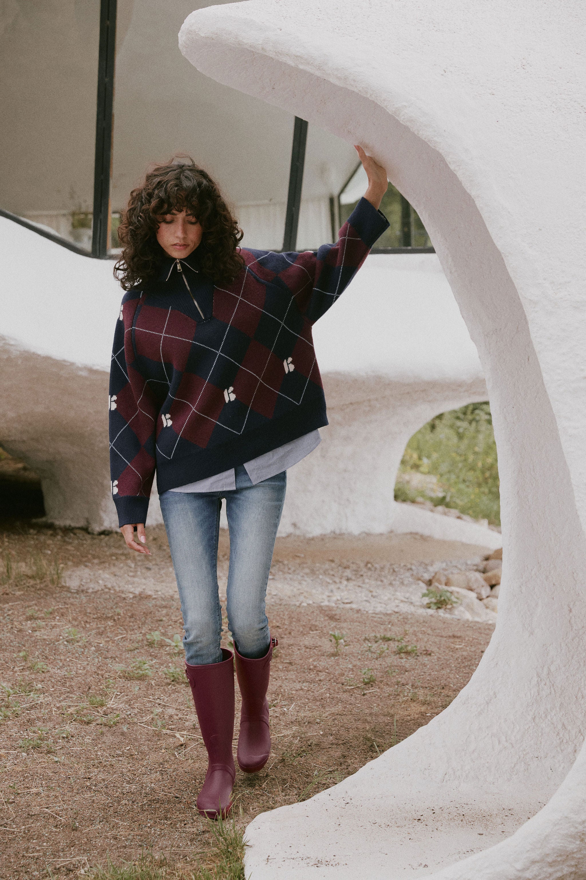 Les silhouettes se redessinent et se muent dans des teintes profondes : bruns chaleureux, bordeaux vibrant, nuances de camels qui réchauffent et qui rassurent. Superpositions délicates et matières nobles composent le théâtre espiègle d’un voyage intérieur, où chaque vêtement devient refuge, chaque maille une étreinte et où l’élégance se suggère sans s’imposer.